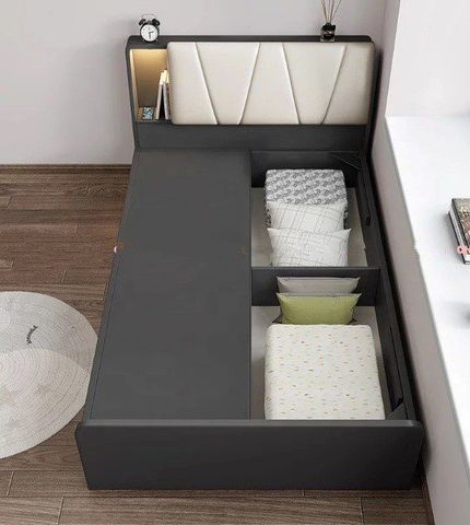 Sản phẩm giường thiết kế có đầu bọc nệm hiện đại với 3 hộc kéo chứa đồ rộng lớn, bên cạnh đó còn thiết kế các ngăn bên trong nệm đầu giường, tiện lợi cho không gian phòng ngủ nhỏ hẹp. Đặc biệt tinh tế khi giường được thiết kế đèn led ở đầu giường, có thể bật sáng bất cứ lúc nào. Các bạn có thể tha hồ làm mọi thứ mình thích trong không gian sang trọng bên cạnh chiệc giường xinh xắn, thông minh.