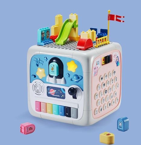 - Chi tiết sản phẩm: Khối rubik 6 mặt gồm có: 1 mặt đàn: với các phím đàn cùng 10 khối 2 mặt, lắp vào là rubik đọc từ vựng tiếng Hàn và tiếng Anh, gạt cần xuống là rubik phát bài hát - 15 bài hát Hàn và Anh; 1 mặt Let’s learn ABC cùng 4 chế độ: đọc chữ cái, đọc từ song ngữ Hàn/Anh, phát âm từ vựng, phát nhạc. 1 mặt bánh răng cho bé phát triển vận động. 1 mặt cho bé lắp ghép với các gờ tròn, đi kèm là 23 khối xếp hình. 1 mặt dọn dẹp cùng các hình khối quen thuộc, chơi xong bé cũng tự cất các khối xếp hình vào trong hộp. 1 mặt mê cung với các con số, hình khối cho bé phát triển tư duy